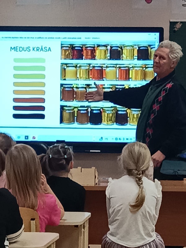 Īpaši aizraujošs bija brīdis, kad skolēni varēja uzdot jautājumus biteniekam, kā arī paši atbildēt uz viņa sagatavotajiem jautājumiem, pārbaudot savas zināšanas par bitēm un medu. Par aktīvu līdzdalību un zinātkāri skolēni saņēma arī mazu dāvaniņu – piespraudīti.