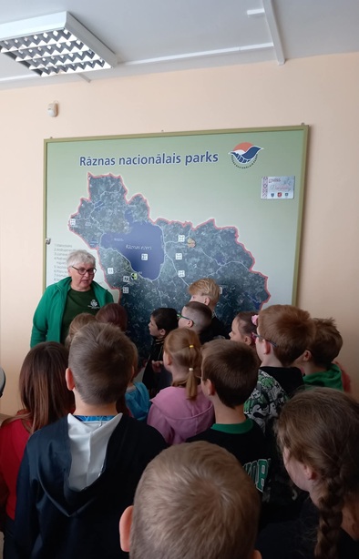 Ierodoties Dabas aizsardzības pārvaldes Rāznas Nacionālā parka dabas centrā, mūs sagaidīja gide Regīna Indriķe. Norisi viņa iesāka ar jautru iepazīšanās rotaļu – katram dalībniekam bija jānosauc savs vārds un viens sev zināms dzīvnieks. Tas radīja draudzīgu atmosfēru un palīdzēja noskaņoties dienas aktivitātēm.